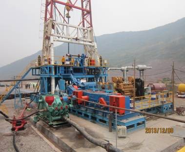 該鉆機承載部分采用了撬裝式底座平臺拼接,前臺轉盤平面高度為5.2米,后臺高度為1.5米,底座外形尺寸19580×10640。起升裝置配K型井架,其有效高度達到43米,六輪天車并配置起重修理架。JC40絞車為低位安裝全封閉式,最大輸入功率735KW,最大快繩拉力250KN,使用Φ32mm鋼絲繩。旋轉系統由通徑700mm的ZP-275轉盤以及SL-225的水龍頭等組成。動力部分配置了功率為588KW的PZ8V190和功率為882KW的PZ12V190B柴油機,傳動系統為整體鏈條并車箱。配套我公司首次自主設計制造的固控循環系統,由4個40立方的泥漿處理罐、1個40立方的泥漿儲備罐以及振動篩、除砂器等構成。操縱控制系統采取氣動控制。該設備的采購及設計標準均符合API規范。