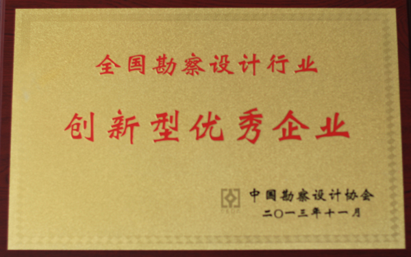 根據中國勘察設計協會中設協字[2013]88號文《關于公布創新型優秀企業、優秀企業家(院長)評選結果的通知》,我單位榮獲中國勘察設計協會2013年度“全國勘察設計行業創新型優秀企業”稱號;韓立君董事長榮獲“全國勘察設計行業優秀企業家(院長)”稱號。