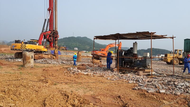 施工內(nèi)容及工程量:灌注樁鋼筋籠制作、運(yùn)輸及安放,鉆孔樁成孔、商品砼采買、砼灌注。旋挖鉆孔灌注樁樁基工程共完成1244根,樁徑800mm,樁身混凝土強(qiáng)度等級為C30,完成總米數(shù)23458.18米,設(shè)計(jì)混凝土方量11791.37方,實(shí)際灌注混凝土15624m³,后壓漿共使用900噸復(fù)合硅酸鹽水泥,加工鋼筋791.56t。