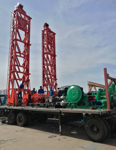 6、鉆機采用模塊化結構設計,具有可獨立使用的轉盤部分、變速箱卷揚部分、動力部分、泥漿循環系統、拖車部分、鉆塔部分。具有配套齊全、結構緊湊的設計特色。該鉆機于2014年3月19日獲得國家實用新型專利,2015年2月13日獲得河北省建設行業科學技術進步一等獎,并獲得河北省科學技術進步獎三等獎。