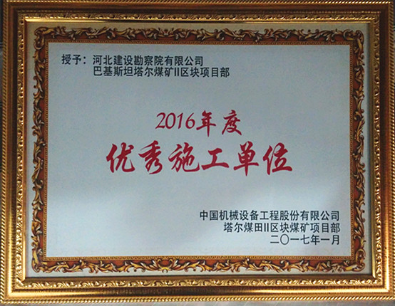 1月19日,巴基斯坦塔爾煤礦總承包方CMEC舉行2016年度優(yōu)秀集體及先進個人表彰大會,我公司疏干井項目部榮獲CMEC煤礦優(yōu)秀施工項目部稱號,鄭聚印等三人及一名巴籍員工獲得優(yōu)秀先進個人稱號。CMEC塔爾煤礦項目總經理高度贊揚了我公司不畏艱辛,排除萬難,按期完成疏干井施工工作,給下一步煤礦投產奠定了基礎。同時,希望我公司繼續(xù)發(fā)揚苦干快干的精神,如期完成疏干井排水管道的施工任務。