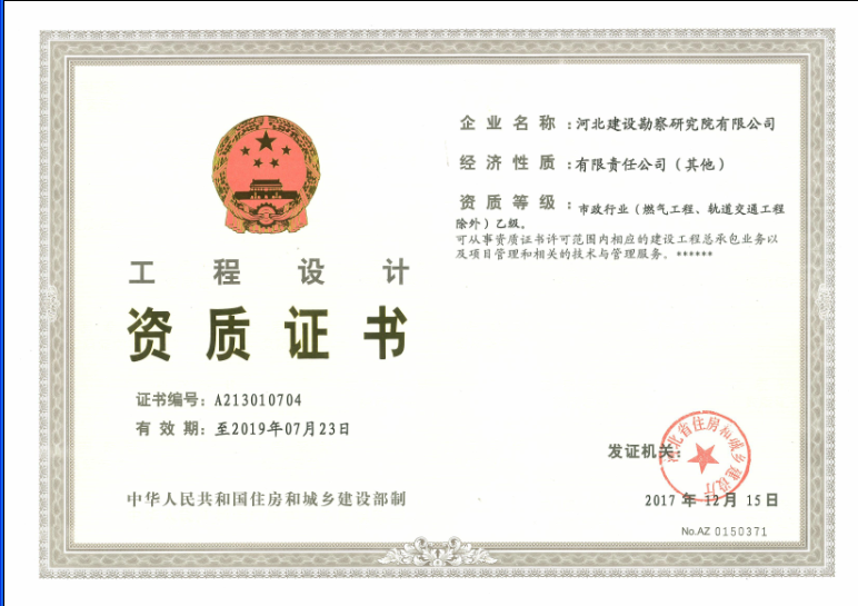經(jīng)過(guò)艱苦努力,我公司于2017年12月15日取得了市政行業(yè)(燃?xì)夤こ獭④壍澜煌üこ坛猓┰O(shè)計(jì)乙級(jí)資質(zhì)證書(shū),為我公司進(jìn)一步拓展相關(guān)市政設(shè)計(jì)業(yè)務(wù),進(jìn)而從事市政建設(shè)工程總承包業(yè)務(wù)創(chuàng)造了良好的條件。