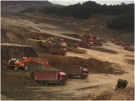 由于本工程所處地質條件的特殊性,施工過程中爆破工作量很大,同時由于山路陡峭崎嶇,給排土場道路的施工帶來了很大難度。施工過程中,我單位秉持精心安排、用心服務的管理理念,開挖過程中合理劃分施工區域,根據不同地塊的石方開挖高度采取合理的鉆爆施工方案,既避免了交叉作業帶來的安全問題同時也提高了施工效率。
