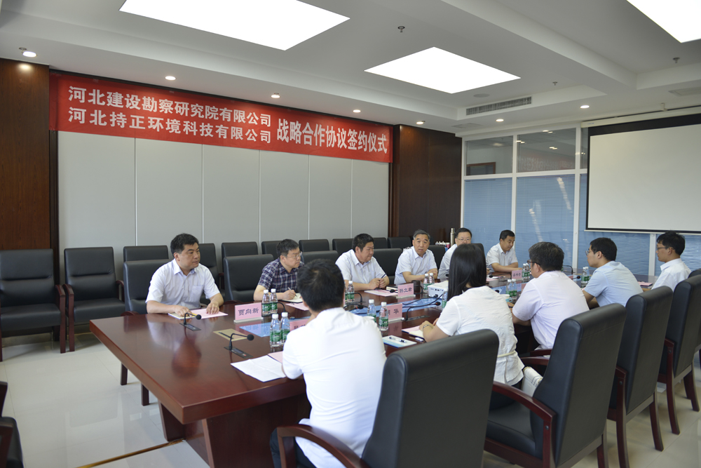 在戰略合作會談中,雙方就各自的發展歷程、企業理念和專業優勢進行深入交流,并在地質勘察、環境檢測與治理、環保技術工法研發、標準制定等多領域達成合作共識。韓董事長、王董事長就雙方項目深入合作方面提出了重要建議,雙方與會人員紛紛表示本著優勢互補、合作共贏的經營理念,一定能在勘察、環保治理市場上共同進步、共同發展。