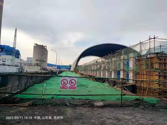 沾化一電干煤棚擴建封閉、原煤棚山墻及露天皮帶封閉、卸煤槽儲煤區封閉及附屬設施所有土建裝飾工程位于山東省濱州市。該項目由沾化匯宏新材料有限公司投資建設。我公司承擔干煤棚、原煤棚山墻、露天皮帶、卸煤槽儲煤區四個施工部位的基礎、梁柱及擋墻的施工和地面澆筑,內容包括基槽方開挖施工(約13000方)、樁頭破除(950顆)、鋼筋制作綁扎(約700噸)、混凝土澆筑(約8000方)、模板加工制作安裝(約11000平米)、防腐涂料施工(約7300平米)等內容。