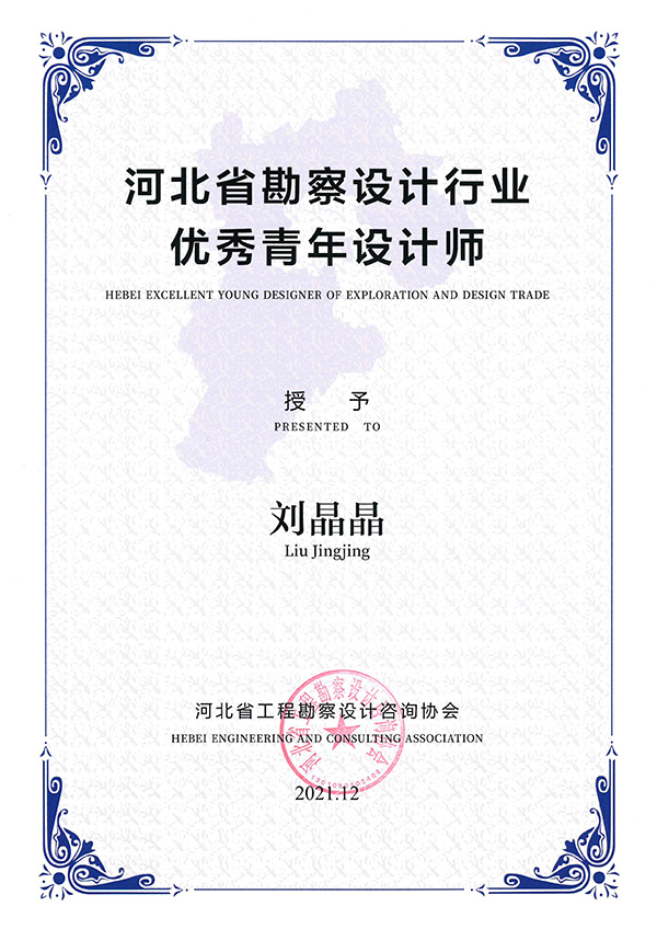 近日,公司監事會主席李友東、副總經理劉晶晶被河北省工程勘察設計咨詢協會授予“河北省勘察設計行業優秀青年設計師”稱號。