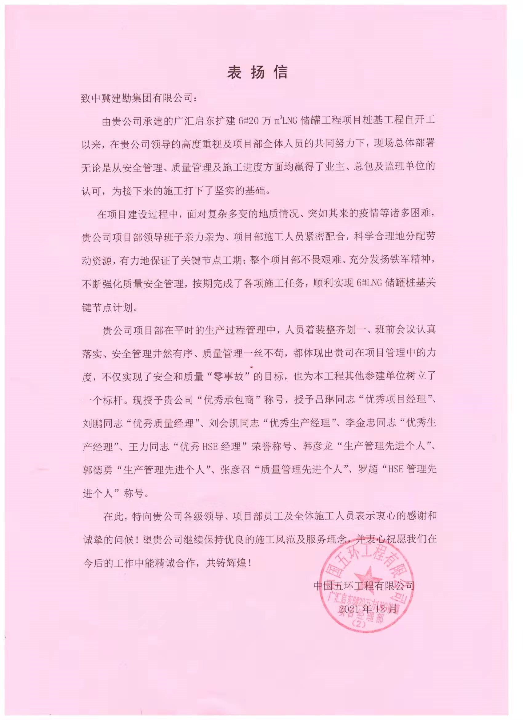 近期公司連續(xù)收到業(yè)主及總包發(fā)來的表揚(yáng)信,對(duì)我公司項(xiàng)目的質(zhì)量及安全管控等方面的工作表示了一致認(rèn)可。
