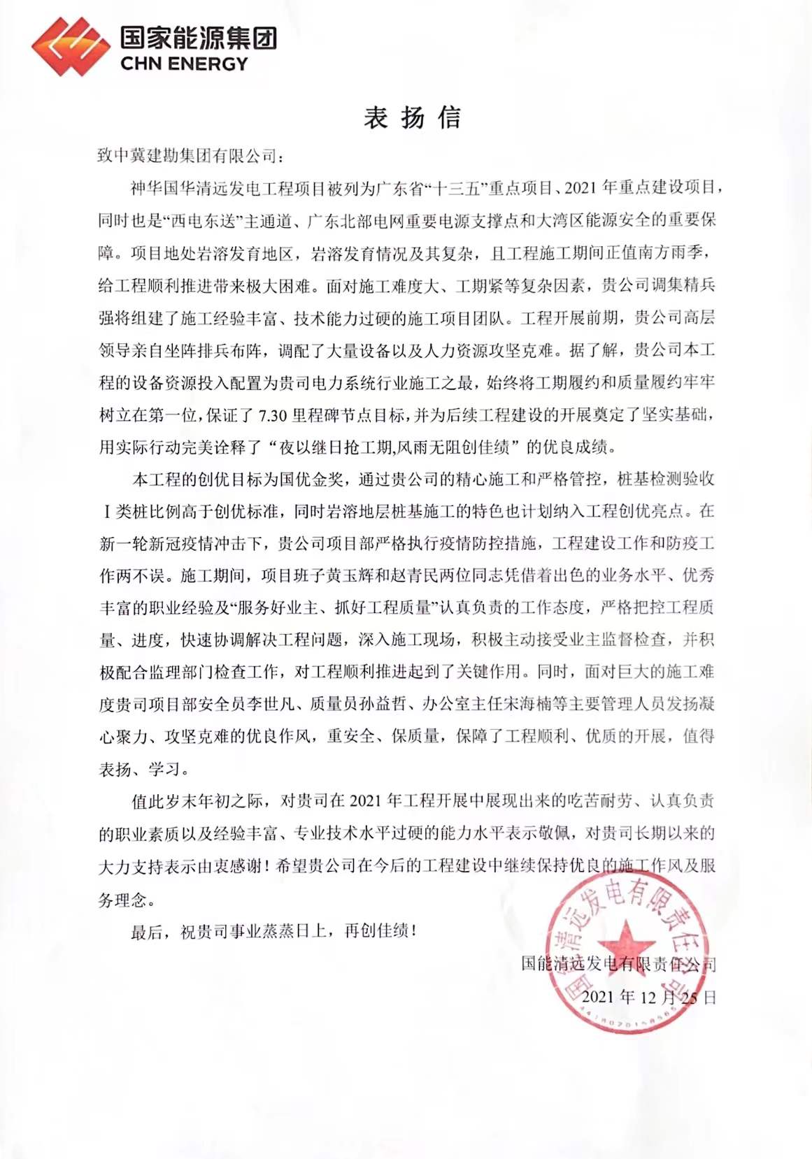 神華國(guó)華清遠(yuǎn)發(fā)電工程項(xiàng)目被列為廣東省“十三五”重點(diǎn)項(xiàng)目、2021年重點(diǎn)建設(shè)項(xiàng)目,同時(shí)也是“西電東送”主通道、廣東北部電網(wǎng)重要電源支撐點(diǎn)和大灣區(qū)能源安全的重要保障。我項(xiàng)目在建設(shè)過程中 “夜以繼日搶工期,風(fēng)雨無阻創(chuàng)佳績(jī)”的工作效率得到了高度贊揚(yáng)。