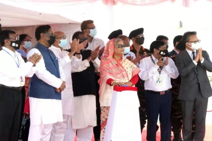 當地時間2022年3月21日,由中冀建勘集團有限公司參建的孟加拉帕亞拉2×660MW燃煤電站項目(一期)在孟加拉國總理哈西娜、中國駐孟加拉大使李極明和參贊劉振華一行見證下舉行了落成典禮大會,孟加拉國總理哈西娜為項目揭牌。