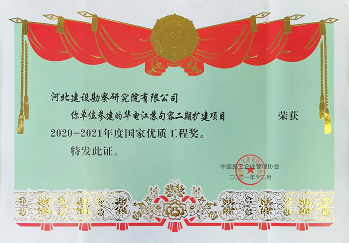 我公司參建的華電江蘇句容二期擴建項目榮獲2020—2021年度國家優質工程獎。