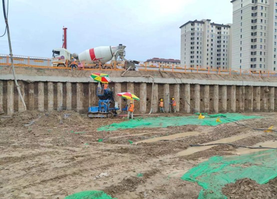 本項(xiàng)目于2021年06月09日正式開(kāi)工,2021年08月27日施工完成,施工工期為80日歷日。 在全體施工人員的共同努力下,共完成噴面約2540m²、土釘約4310m、錨索約3170m、鋼腰梁約520m、冠梁約325m、擋水墻約280m;鉆孔灌注樁共完成331根,其中直徑0.6m支護(hù)樁完成212根,0.8m支護(hù)樁完成45根,直徑1.0m樁完成62根;直徑0.6m試樁完成6根,直徑0.8m試樁完成6根。