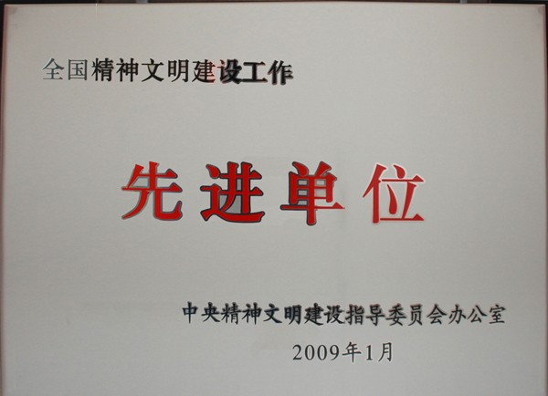 近年來,我公司堅持以科學(xué)發(fā)展觀為指導(dǎo),在全體員工中積極開展精神文明創(chuàng)建活動,文明施工程度和員工素質(zhì)不斷提高,精神文明建設(shè)取得顯著成績。近日,我公司受到中央精神文明建設(shè)指導(dǎo)委員會辦公室表彰,被授予“全國精神文明建設(shè)工作先進(jìn)單位”稱號。