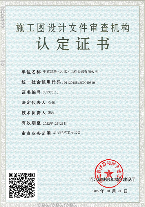 我公司全資控股子公司——中冀建勘(河北)工程咨詢有限公司,于2022年10月24日取得施工圖設計文件審查機構認定證書,可承接二級及以下房屋建筑工程的施工圖審查業務。隨著施工圖設計文件審查機構認定證書的取得,為我們進一步積極開展市場經營工作,努力將施工圖審查業務打造成為新的經營創收增長點,提供了新的契機和基礎。