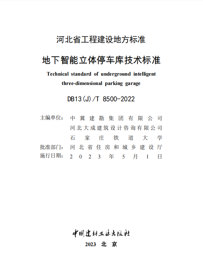 近日,我公司主編的河北省工程建設(shè)地方標(biāo)準(zhǔn)《地下智能立體停車庫(kù)技術(shù)標(biāo)準(zhǔn)》(DB13(J)/T 8500-2022)、《污染場(chǎng)地巖土工程勘察技術(shù)標(biāo)準(zhǔn)》(DB13(J)/T 8518-2023)由河北省住房和城鄉(xiāng)建設(shè)廳正式發(fā)布,并印刷出版發(fā)行,分別將自2023年5月1日和7月1日起實(shí)施。