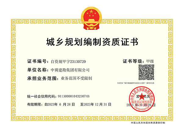經過10個月的精心準備和實施,集團公司于2023年6月26日通過了自然資源部城鄉規劃編制單位資質審查,喜獲城鄉規劃編制單位甲級資質。城鄉規劃編制單位甲級資質是規劃行業的最高資質等級,該資質的取得將有力促進公司城鄉規劃編制業務開展,對公司轉型升級、地方市場開拓將起到重要作用,為公司持續穩定發展奠定更加堅實的基礎。