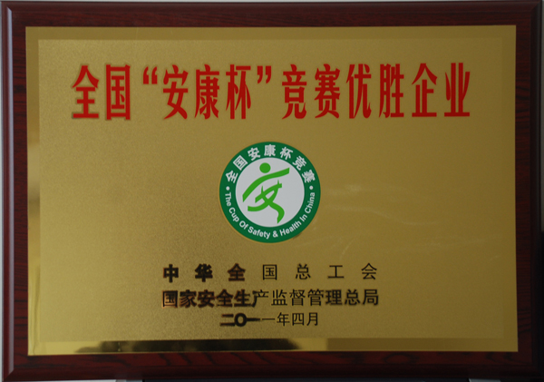 公司在2010年度全國“安康杯”競賽活動中榮獲優勝單位稱號,這是我公司連續七年榮獲全國安康杯競賽優勝單位。