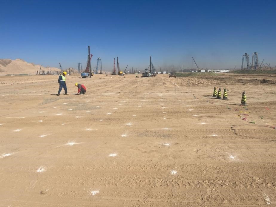 10萬噸/年碳基新材料項目地基處理工程位于甘肅省蘭州市,由蘭州東金碳基新材料有限公司投資建設,工程共計完成地基處理 250000㎡。