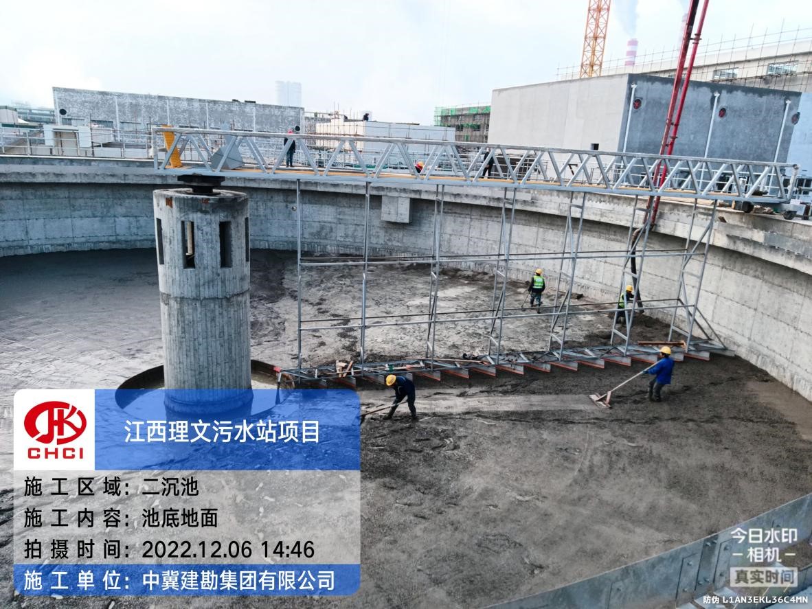 配套污水站及中水回用Ⅱ標段建筑工程工期短,工程量大,施工任務重,結構復雜,受氣象條件影響大,施工工期處于當地雨季,項目部制定了合理的雨季施工措施。同時,本工程技術要求高,構筑物抗滲、抗裂要求高,由于大部分結構為薄壁混凝土結構,受水化熱效應的影響,容易產生應力裂縫,引起滲漏,影響使用壽命。此外,構筑物施工精度要求高,各種預埋管件較多并且安裝精度要求高,施工難度較大。施工過程涉及2個部位高支模危大工程,需要投入大量人力、物力。