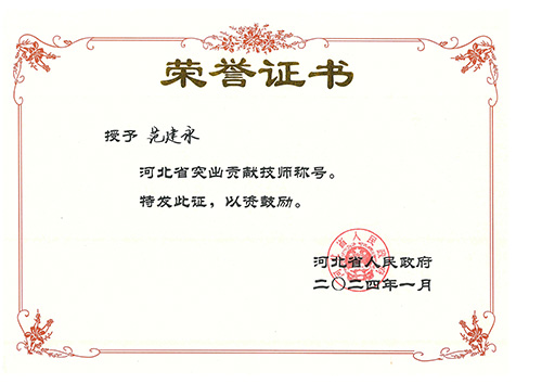 公司范建永同志榮獲河北省突出貢獻技師稱號