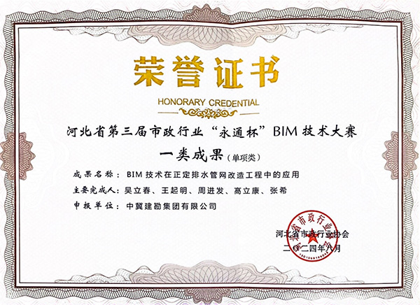 近日,河北省市政行業協會發文《關于公布河北省第三屆市政行業“永通杯”BIM技術大賽結果的通知》(冀市協〔2024〕21號),我公司參賽項目“BIM 技術在正定排水管網改造工程中的應用”項目榮獲一類成果。 經過認真組織和準備,公司此次參賽的技術成果與往屆相比有明顯進步,希望廣大職工以此為契機,再接再厲,進一步加強BIM技術學習,推進BIM技術應用,為逐步建立“數字化巖土”和促進公司“五化”建設奠定良好基礎。