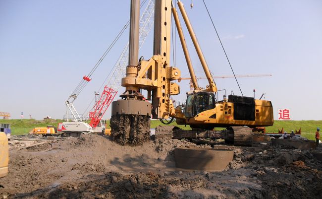 工程采用大直徑旋挖鉆機成孔,氣舉反循環二次清孔。
