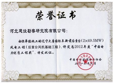 近日,由我公司參與施工的遼寧大唐國(guó)際阜新前后查臺(tái)2×49.5MW風(fēng)電工程(后查臺(tái)風(fēng)機(jī)基礎(chǔ)工程)被中國(guó)電力建設(shè)企業(yè)協(xié)會(huì)評(píng)定為2012年度“中國(guó)電力優(yōu)質(zhì)工程獎(jiǎng)”。