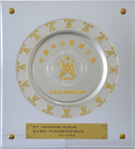近日,我公司參與施工的華能大慶綠源風(fēng)電一期192MW工程(新立、五棵樹風(fēng)電場風(fēng)機(jī)樁基礎(chǔ)施工)被中國電力建設(shè)企業(yè)協(xié)會(huì)評(píng)為2013年度“中國電力優(yōu)質(zhì)工程獎(jiǎng)”。